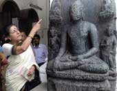 | Union tourism minister Ambika Soni admires a Buddha statue at Indian Museum on Tuesday. (PTI) |
