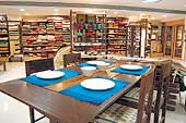 In another section of the store, there are rows of upholstery and readymade curtains in natural woven fabrics, silks, chanderis and muls. Besides the regular mono tones, there are some with gold embossments, appliques as well as tone-on-tone embellishments.
