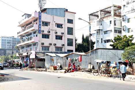 People in the DD Block neighbourhood are clearly miffed about the exodus of slum-dwellers. “They should have been moved elsewhere,” says an employee of hotel De Sovrani. “What’s the meaning of uprooting them from Karunamoyee and giving them permanent residence at an even more posh locality?”