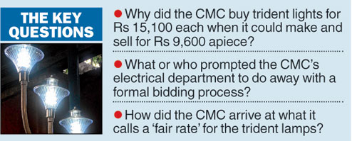 A team of CMC officials had fixed a “fair rate” of Rs 17,600 for each trident lamp, including installation charges, for the civic body’s beautification project. The chosen contractors agreed to provide lamps for Rs 15,100 each, exclusive of installation charges.