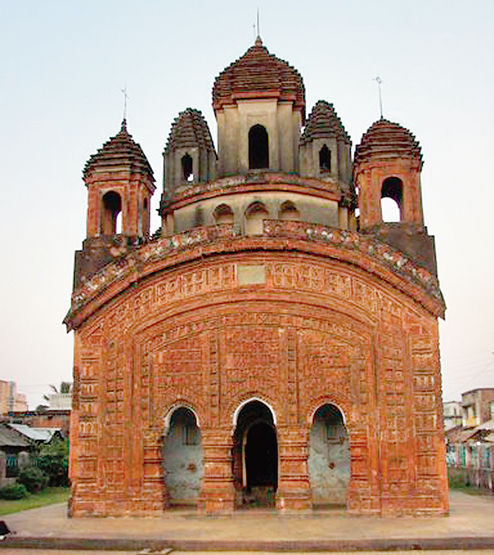 Kendubillo is also known for its terracotta temples. A majestic Radha Vinod temple, a masterpiece in the Navaratna style that is a trademark of the Bengal school of architecture, is a must-see. It was established by Maharani Brajakishori, mother of Maharaja Kirtichandra of the royal family of Burdwan, in 1683. This nine-tower temple has terracotta panels only on the front. Panels and designs on the other sides were destroyed a long time ago. But the surviving terracotta panels are in excellent condition and very different from what we find on the walls of temples in Bankura.