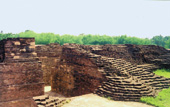 The town is dotted with old temples. The largest of them is Shyamchand temple in the Burrabazar area. The structure is 110 ft high and 68 ft wide. The temple, in the aatchala style of the Bengal school, was built in 1726 by a rich merchant named Ramgopal Khan Chowdhury at a cost of nearly Rs 2 lakh. The idol inside is made of black stone. The king of Nadia once headed the temple committee. There are five arches, decorated with small lingams, in front of the temple. Very few of the terracotta motifs are left. The limestone artefacts, however, are in good condition.