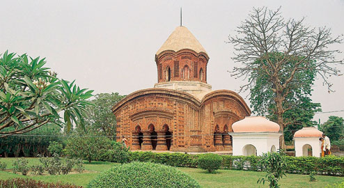 The famous Ananta Basudev temple and Hangseshwari temple are also located here. Ananta Basudev is a terracotta temple built by King Rameshwar Dutta in 1679. It very much looks like the terracotta temples of Bishnupur. There is a beautiful garden in front of the temple. The walls of the temple are adorned with sculptures depicting stories from The Ramayana and The Mahabharata. In the garbhagriha (sanctum sanctorum), the main idol of Basudev is missing but sculptures of Vishnu and Shiva are there.