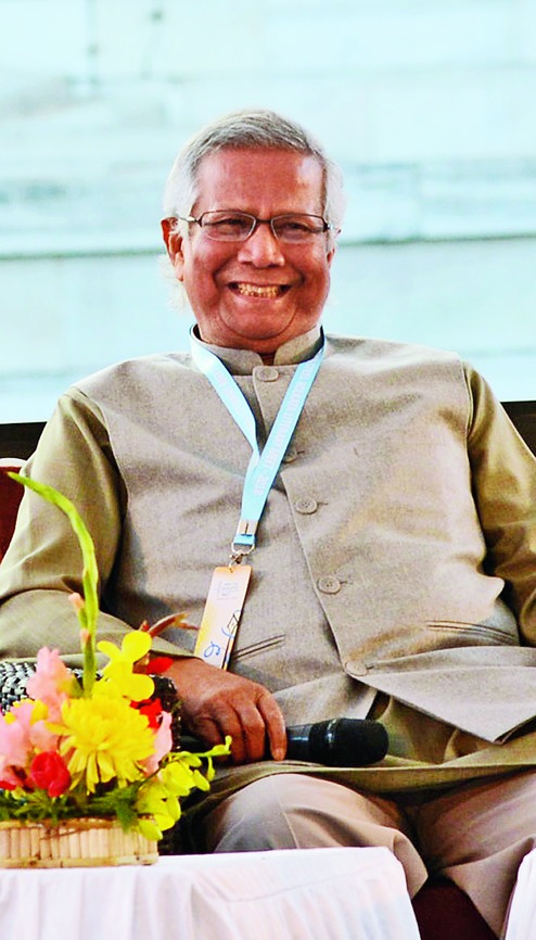 "Making money is happiness, but making other people happy is super happiness," said the Bangladeshi economist and civil society leader, who was awarded the Nobel Peace Prize for founding Grameen Bank and pioneering the concepts of microcredit and microfinance.