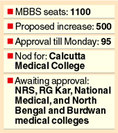 Officials at NRS and RG Kar medical colleges said they had not received any letter from the council on Monday. The two colleges have 150 MBBS seats each and want to increase the count by 100.