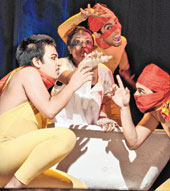 | A scene from Grope and Grab, staged by Part Time Lovers at Kalakunj. Picture by Arnab Mondal |