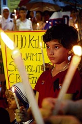 | A candlelight protest in Calcutta on Wednesday against the Orissa killings. Picture by Sanjoy Chattopadhyaya |