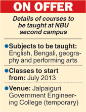 The institution that will come up on a 33-acre plot on the Jalpaiguri Government Engineering College campus will offer two-year postgraduate courses in English, Bengali, geography and performing arts. The NBU campus in Shiv Mandir near here offers PG courses in English, Bengali and geography.