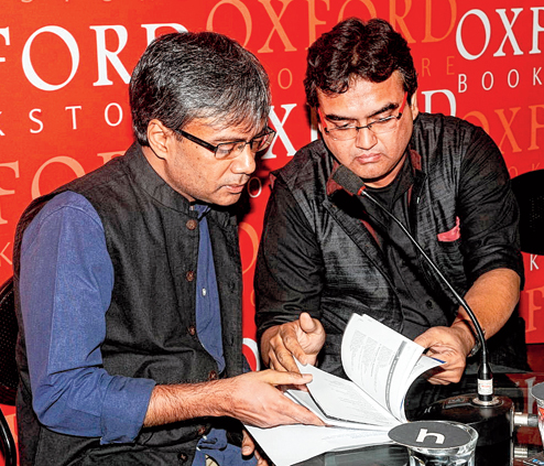 | Amit Chaudhuri and Sudeep Sen at the launch of Fractals at Oxford Bookstore. (Arnab Mondal) |