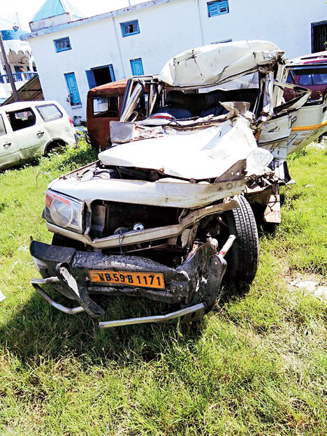 Sources said the policemen had hired the SUV and started for Calcutta on Sunday night. The deceased were Mohammad Masood, 51, a sub-inspector posted as reserve officer in the district police, Tarun Das, 47, a constable and Prabhash Das, 28, the driver.