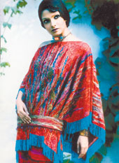 ?The poncho is an amazing garment and it suits practically everybody. You don?t have to bother about the fit and the cut. It covers up the mid-section figure flaws, too. It is doing really well with my clients, especially a line where I have teamed them up with brocade pants,? says Megha.