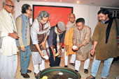 | Samir Aich’s (wearing cap) Nomadic Detours being inaugurated at CIMA Gallery on Friday |