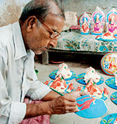 | Artist Ganesh Ghosh paints a shara. (Sanat Kr Sinha) |