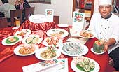 | A chef shows off prawn delicacies at Oh! Calcutta. |
