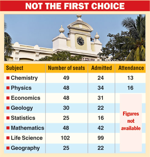 When admissions closed last year, Presidency had 23 seats vacant across departments, including science and arts. This year the figure reported by the chemistry department alone has surpassed that.