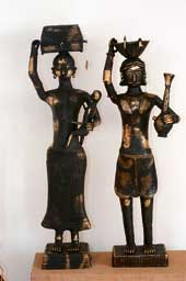 “While traditional dokra has a matte finish, these days craftsmen innovate and lend a shine to it through polish to suit modern tastes,” explains Pratiti. Another innovation is carbonising dokra, seen on a set of statuettes of a tribal couple with a kid. Another eye-catcher is a nagordola made of traditional lustreless dokra, priced at Rs 15,000.