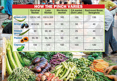 Abnormal variances in vegetable prices across the major markets in town have pinched the common man’s pocket and made Mamata Banerjee wince.