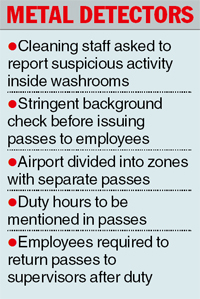 The airport has been divided into around 12 zones and passes are issued for each. "An employee who has a pass for the arrival area won't be allowed to enter the departure level," the official said.