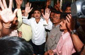 | NEGLECT CRY: (Above): Actor Prosenjit pacifies crowds at the hospital. (Below): Actor Jeet arrives at the hospital. Pictures by Aranya Sen |