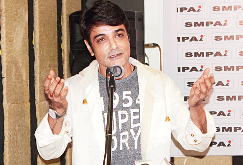 Actor Prosenjit Chatterjee speaks at the launch of a branch of SMPAi in Jyotinagar near Siliguri on Friday.