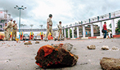 | The scene after the battle between protesters and police near the Vidyasagar Setu toll plaza on Thursday. Picture by Gopal Senapati |