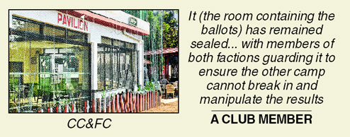 Sources said those who stormed into the room included two elderly past presidents. The altercation with the scrutineers that followed ended around 2am with a senior club official sealing the room. “It has remained sealed since with members of both factions guarding it to ensure the other camp cannot break in and manipulate the results,” a senior member said.
