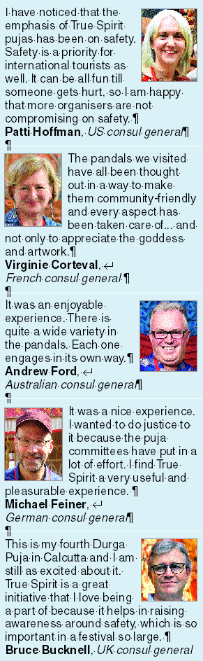 Pictures by Rashbehari Das, Pabitra Das, B Halder, Shuvo Roychaudhury and Biswajit KunduMrs India International and actress Richa Sharma strikes a pose at the Thakurpukur State Bank Park Sarbojanin, the Model Puja for CESC The Telegraph True Spirit Puja 2019 in association with LIC, David & Goliath and New India Assurance Co Ltd, with education partner IIHM, radio partner 91.9 Friends FM, television partner ABP Ananda and knowledge partner JIS Group. “It’s amazing. The puja organisers have taken care of every small detail. The facilities — a room for senior citizens, special toilets for the differently abled, an infirmary with first-aid provisions and even a small operating theatre. The entry and exit points were very well-managed. Definitely one of my favourite pujas this year,” said the brand ambassador for David and Goliath.