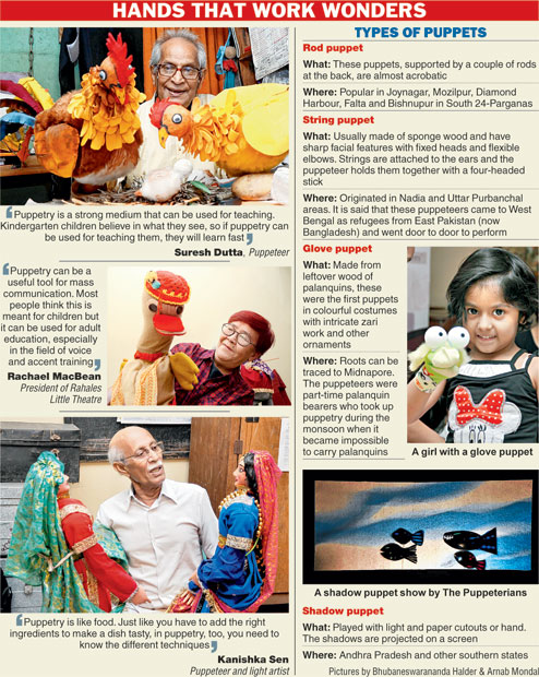 Veteran puppeteers Suresh Dutta and Kanishka Sen, too, advocate the use of puppetry as a teaching tool in schools. “Puppetry is a strong medium that can be used for teaching. Kindergarten children believe in what they see, so if puppetry can be used for teaching them, they will learn fast,” Dutta said.