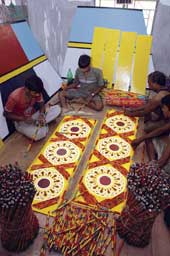 Under Pal’s supervision, the artists from Orissa are working round the clock to complete the pandal decoration. The artists who have come down from Puri include Purna Chandra Mahapatra, Sib Prasad Sabut and Hemanta Jena.