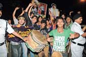 | Members of Shah Rukh Khan Fans Club celebrate outside the Eden Gardens. (Sanat Kr Sinha) |