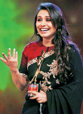 | She zipped into town, zapped the Science City audience with her charm and then zoomed off to Mumbai — all in an evening’s work for Rani Mukerji. At the starry Boroplus Anandalok Purashkar 2011 on Thursday, she bagged the Best Actor Female (Bollywood) award for her performance as a television journo in No One Killed Jessica. “Aar ki bolbo… eto bhalobasha, eto bhalobasha, eto bhalobasha je shob shomoy Anandalok Awards-ey eshe chokhe jol eshe jaay (What do I say... there’s so much love... that every time this event brings tears to my eyes). Thank you!” she gushed, looking fetching in a black sari. The Anandalok stage was then rocked by Dev, Jeet Gannguli, Rupam and Nusrat Jahan. Picture by Sanjoy Chattopadhyaya |