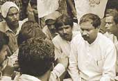 | Bangsibadan Barman (extreme right) with demonstrators on the Dinhata-Cooch Behar road. A Telegraph picture |