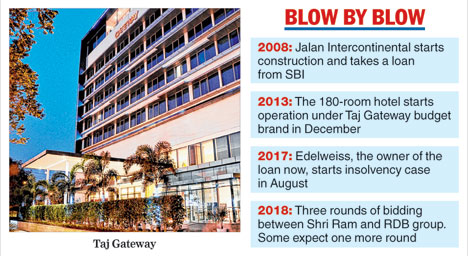 The four-year-old Gateway Hotel was developed by Jalan Intercontinental Hotels Limited and managed by The Taj Group under the Gateway brand. According to industry sources, the company's dues to the creditors shot up because of cost escalation following delays in issuing environmental clearances.