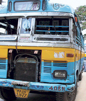 | One of the impounded buses at Baguiati police station. Picture by Soumen Bhattacharjee |