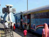 | Bholu, the mascot of the Indian Railways, waits for visitors at the museum on wheels. Picture by Avijit Sarkar |