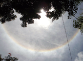 | The circular halo of the sun that was visible in the morning sky on Monday |