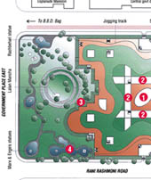 Natural undulating landscaping will act as an open-air theatre for concerts and performing arts, with knockdown tensile structures housing refreshment stalls. A basement walkway will lead up to the open-air food court-cum-exhibition centre around the landmark Lenin statue, with two pedestrian subways connecting Curzon Park to the Metro channel.