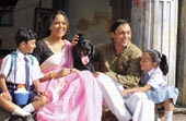| FIRST DAY, FIRST SHOOT: Rahul Bose, Sameera Reddy and ?family? on the sets of Buddhadeb Dasgupta?s Kalpurush on Monday. Picture by Aranya Sen. |