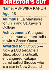 Her film Sirocco – How a Dud Became a Stud had fetched a nomination in the Best Newcomer category from a 42-country field of 488 entries. The film is on one of the critically endangered bird species in the world — the flightless Kakapo parrot that is native to New Zealand — and focuses on a single Kakapo, perhaps the only bird in the world with a government job.