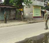 | Security men patrol the deserted streets of Barobisha on Monday. Picture by Anirban Choudhury |