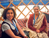 | City writers (left) Sangeeta Bandopadhyay and Bharati Ray at the Edinburgh International Book Festival, where they read from their works Ekaal Shekaal and Jogini. The writers’ participation was part of Calcutta’s bid for the Unesco “City of Literature” title, supported by British Council; (right) Supriya Chowdhury at an event to mark the launch of the Uttam Kumar stamp. (Anindya Shankar Ray) |
