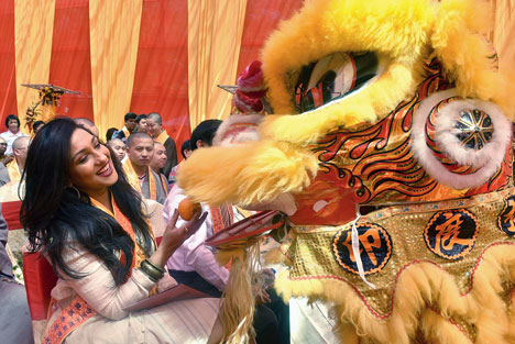An elaborate Chinese tea ceremony was performed by monks of the Lingyin Temple. A martial arts performance concluded the day's programme. Actress Rituparna Sengupta and minister Javed Khan also dropped by.