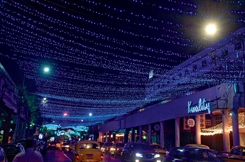 | Park Street beckons, awash in festive lights on Monday night. Picture by Bishwarup Dutta |