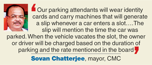 Mayor Sovan Chatterjee said the parking rates fixed by the CMC would be prominently displayed at all parking slots to ensure that car owners weren't fleeced.