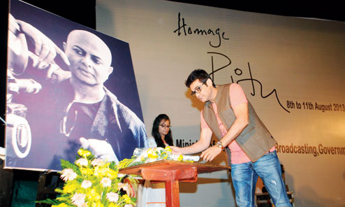 | Prosenjit pays tribute to Rituparno Ghosh at SRFTI on Thursday. Picture by Sayantan Ghosh |