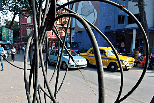 At Esplanade's Lenin Sarani-CR Avenue crossing, a thick mesh of cables continues to hang for years.