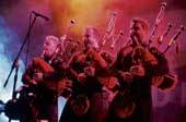 Dressed in black kilts and red socks, the band surprised the audience, both with its musical repertoire and its stage attire. It experimented with a wide array of sounds — traditional folk elements from Scotland, rock, marching tunes and peppy world music — and with Scottish tunes fused with cult rock anthems.