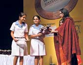 | Students of St John’s Diocesan School collect the Ambuja Realty Award for Best Maintained School |
