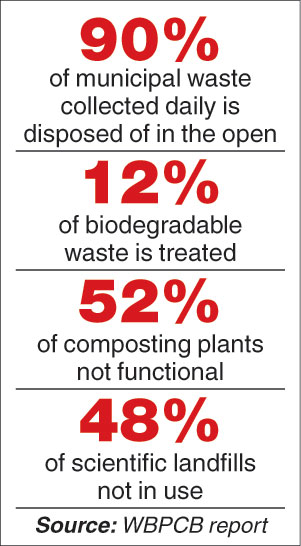 Calcutta: About 90 per cent of the municipal solid waste generated in Bengal every day is dumped in the open in violation of statutory pollution laws, raising the stink of alleged collusion with recycling rackets that have found a fortune in rubbish.