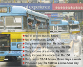 Currently, drivers and conductors get to keep 25 per cent of the total earnings of a private bus. The amount varies from Rs 400 to Rs 600, depending on the route.
